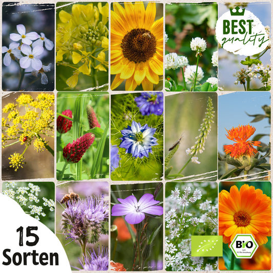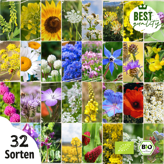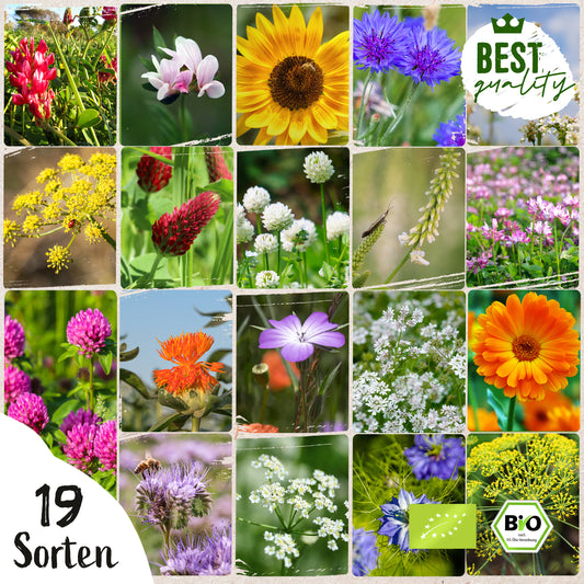 Unsere Blühmischungen sind perfekt für die Anlage von Blühwiesen, die besonders wichtig für Bienen und andere Bestäuber sind. Mit einer Vielfalt an heimischen Wildblumen und Kräutern setzen sie farbenfrohe Akzente und schaffen einen wertvollen Lebensraum für Bienen, Schmetterlinge und nützliche Insekten.
