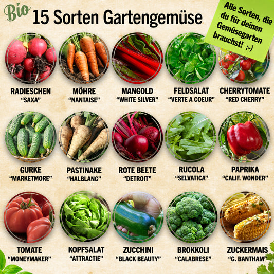 AusverkauftBio Gemüsesamen Probierset mit 15 Sorten